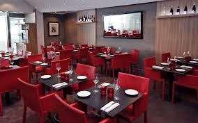 Nous traversons la brasserie et dans le fond, derrière une paroi , nous apercevons ce nouvel endroit avec une décoration sobre de couleur rouge et noire.